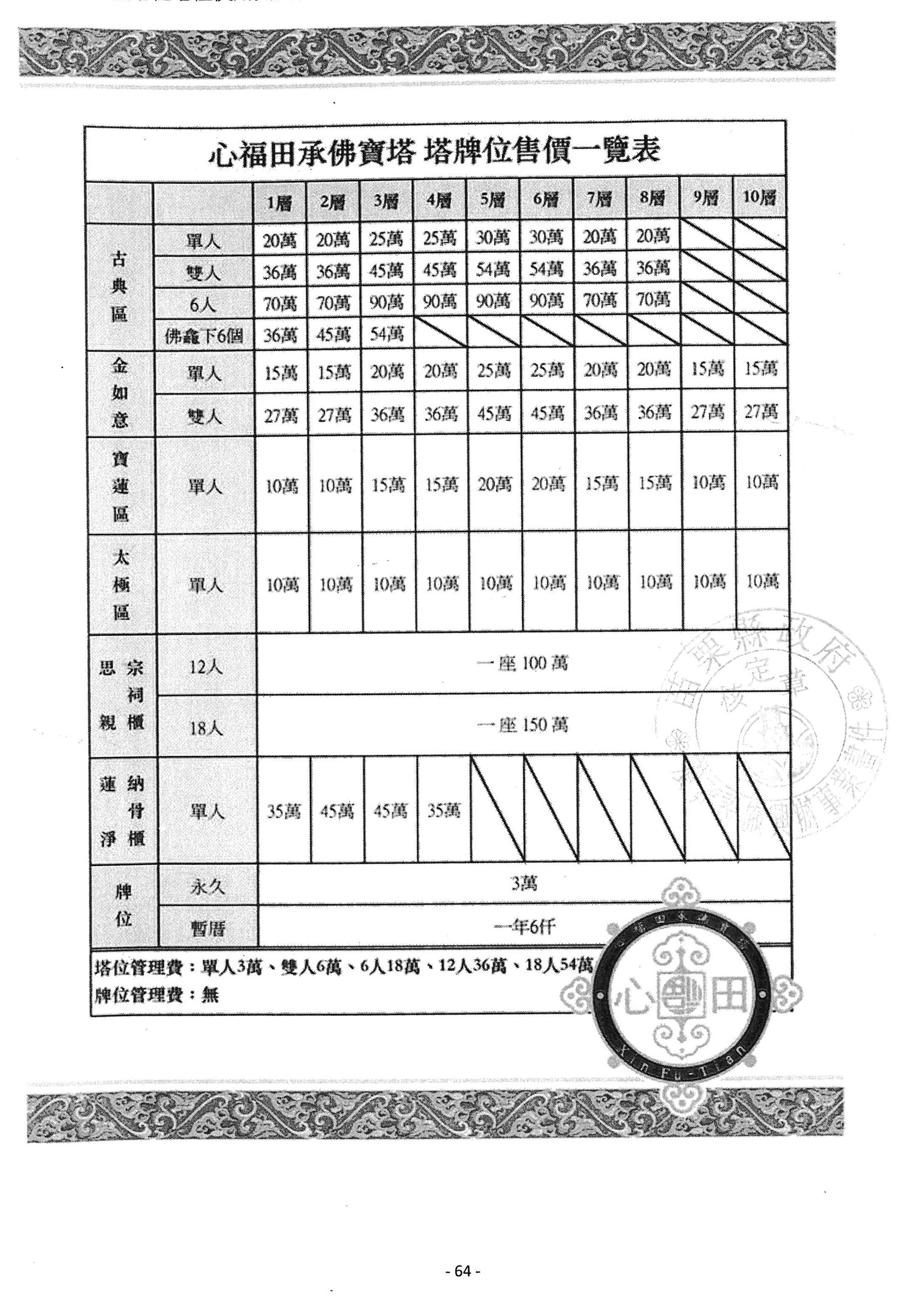 費用:永久安奉每座3萬元